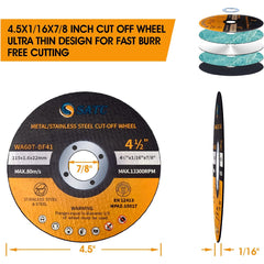 FITS ANY ANGLE GRINDER: Grinder blades is 4 .5"x1/16"x7/8" , total in 25PCS, with Ultra Thin Metal & Stainless Steel fast burr free cutting.Compatible with Die Grinder, Air Cut Off Tool and Electric Cut Off Tool.